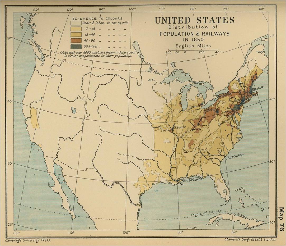 We can also use this logic to produce an isolines map with the line depicting some non specific period of time. These isolines, termed isochrons, depict periodic periods of change as the diffusion of medical schools took place across the eastern coastal states and then from there inland, with a new isolated period of growth commencing in Ohio. Also noted there are still areas barely influenced by medicine. To the west, some culturally-defined traditional forms of medicine are being practiced, ranging from trapper/mountainman medicine to Native American medicine (1835 was the year the Cherokee were forced to march further west out of Iowa, due to which 4000+ died.) Fur trade was very successful on the upper midwestern region (stretching out from Prairie du Chien and every direction). The isolation many of the communities formed in the midwest allowed for communcal living patterns to be established. To many British people settling the Mississippi, this was their New Britain. The French settled towns were still full of Creole families and villages, extending from Cape Girardeau southward towards New Orleans. Pretty much in every direction heading out of the Cincinatti clusters of town and villages, and medical schools, opportunities existed for new medical schools to be opened and new healing faiths to become the standard. The bulk of the political force for medicine existed primarily in itys birthplace towns and cities along the East Coast