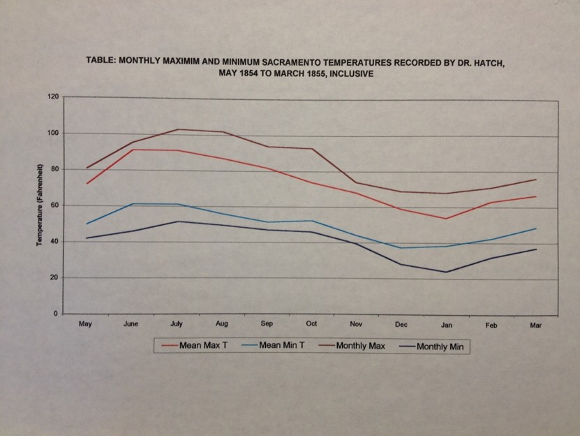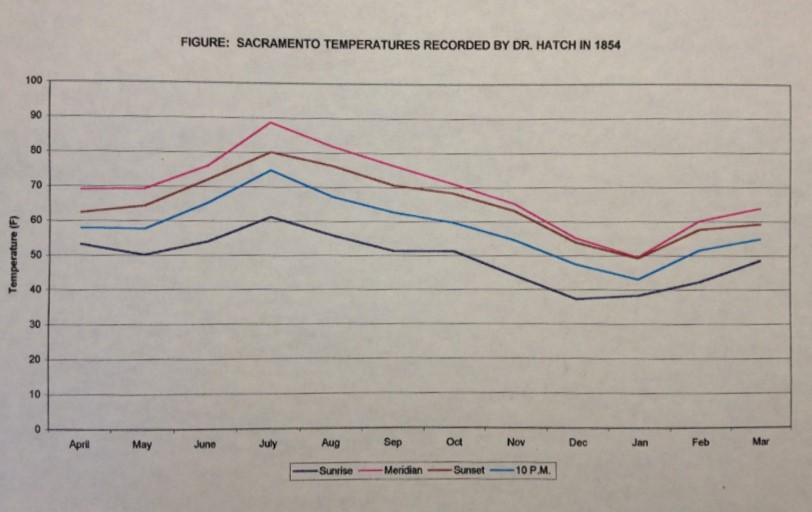 California meteorology-focused medical geographers began their recording of daily temperatures as early as 1848/9. The following was from a published report on this activity.