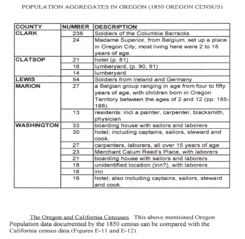 The above table depicts clusters or aggregates of people residing in close quarters. These served as niduses or nests for infectious disease transmission. Crowded quarters combined with poor sanitation practices involving cooking or latrine management would have increased the susceptibility of people becoming infected. The obvious diseases like measles, pox, and the like could have developed in these settings, especially for the quarters where orphaned children resided, but most likely they served as niduses for dysentery and the like. Those inhabited by sailors and other ship staff would have served as avenues of entry for this region for foreign born diseases. The Soldiers of the Columbia Barracks were the most likely, most susceptible candidates for disease in-migration for the most part. Madame Superior’s Clatsop orphanage (which brought in orphans from afar no less) was also a very likely place for people-to-people epidemics to enter the region, like measles, mumps, pertussis, and dysentery.