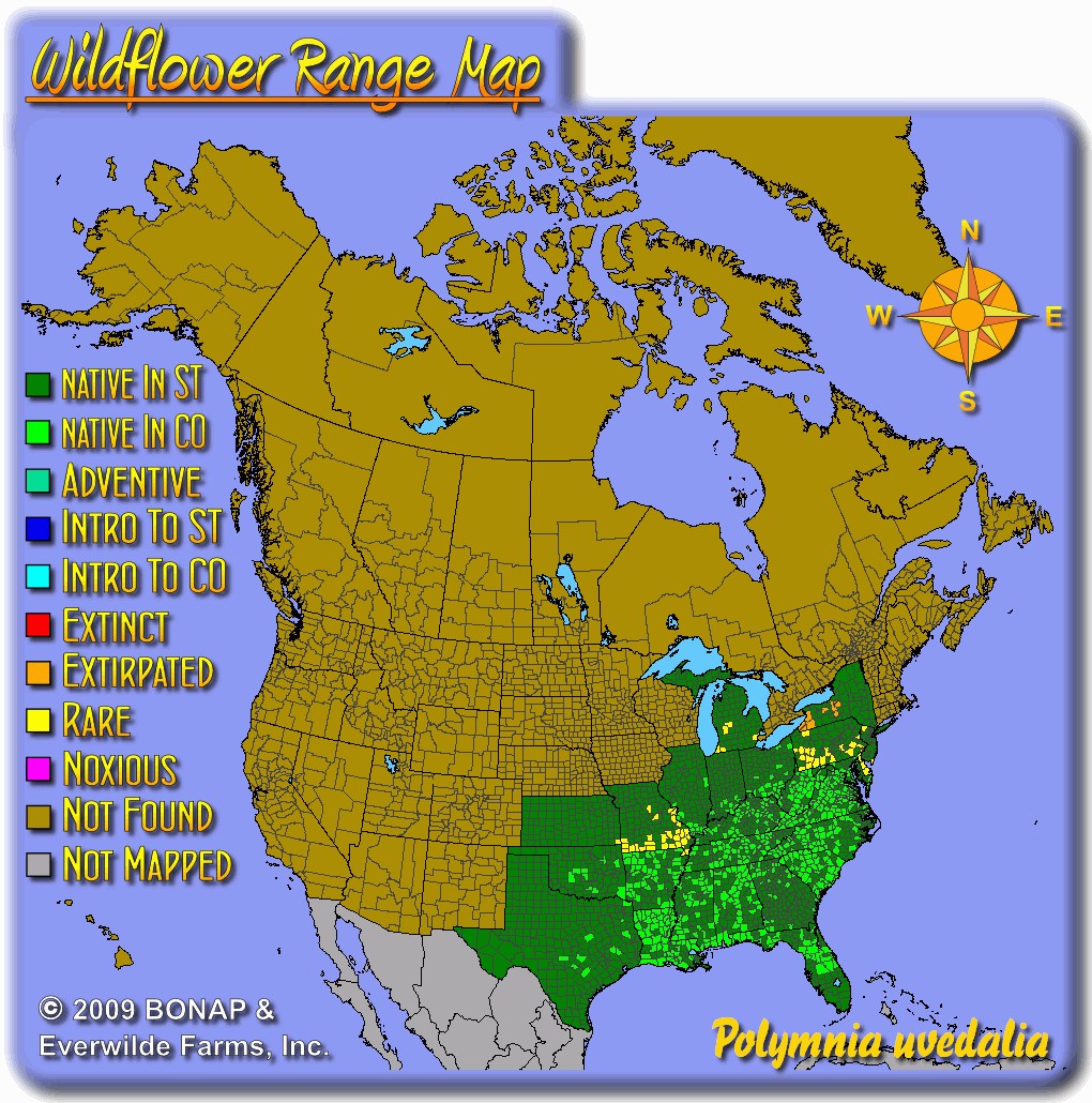 The single most important “trail medicine” around 1845 seemed to be the local wildcrafted equivalent for Jacob’s Ladder–Polymnia uvedalia. This plant was emphasized in a description of herbal medicines provide to Captain Solomon Tetherow’s train in 1844. The members of this train planned to make their way westward on horseback to the Forts in California, for continued travel the following spring into unexplored territory about this region. This was years before the idea of searching for gold in California became popular. These people were out there for the fame and the name it gave them, as mountainmen scoping out new lands to lay claim to as part of a new government plan that was established. Tetherow’s scout was married to a western Indian and professed in botanic medicine. His recipes provide us with details that suggest he was a bit Thomsonian in his philosophy and orientation, focused mostly on eastern Midwest to East Coast and Appalachian herbalism, with just a little knowledge of west coast herbal medicine. His recommendations for the elusive Polymnia uvedalia refer to this state of familiarity with western herbs that I claim he has. Along the Kansas Route to California and the Santa Fe, we do see evidence for this plant residing naturally along the first two days of travel along this route. It is lacking along the northern route westward, the trails leading to Oregon and Salt Lake City.