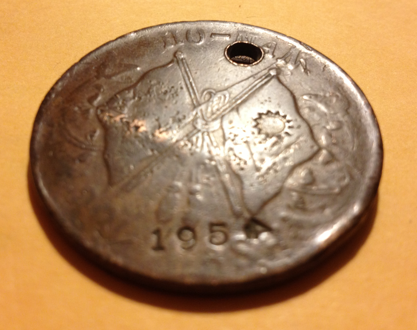 I say this because the artisan or salesperson selling it was asked to stamp it, with both a name and a year for memories and for good luck. I know it was stamped by a person barely literate in the European language, someone not at all familiar with some of the most common figures jotted down on paper to symbolize something else. The meanings of numbers are universal, yet this person who stamped a number into a coin, did not know how it was supposed to look. We can tell this because the ‘4’ in ‘1954’ is stamped sideways. The artisan who stamped it probably could not read English or understand the symbols that represent its numbers.