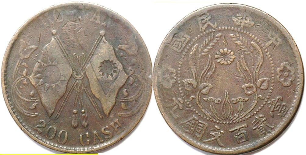 In response to this change, China’s stopped relying upon paper bills and notes and other ways of keeping record of exchanges only on paper. They converted to a cash/coin system. Some of the first large coins in quite some time were struck when this piece of 200 Cash was struck. Today, this Honan 200 Cash struck in brass is perhaps worth half its face in number of dollars. (A copy of it in 2015 was priced at c $71.83.)