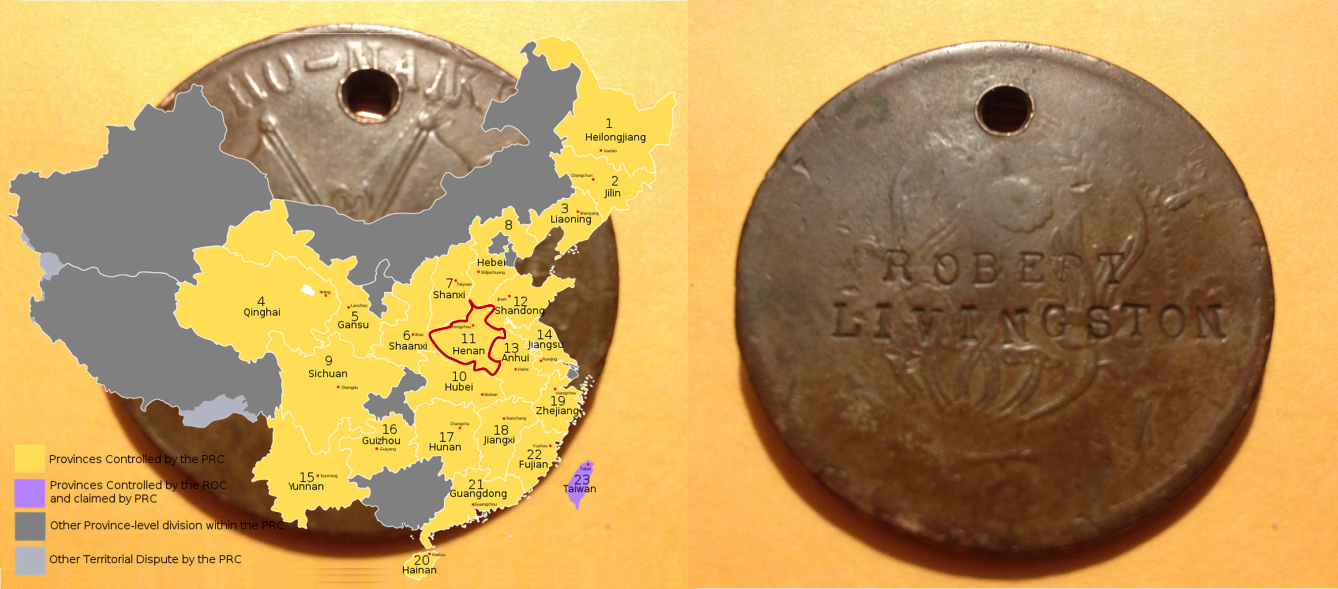However, this coin caught my attention for the exact same reason–except I related it to the Livingston family in New York. The name “Robert Livingston” that was stamped upon it reminded me of this most important family in eastern United States history. When I told him my take on this name, and its relation to the famous missionary family. How did it leave China? I was wondering. How did it makes its way here from China, during a time when the Great Wall was fully in place?