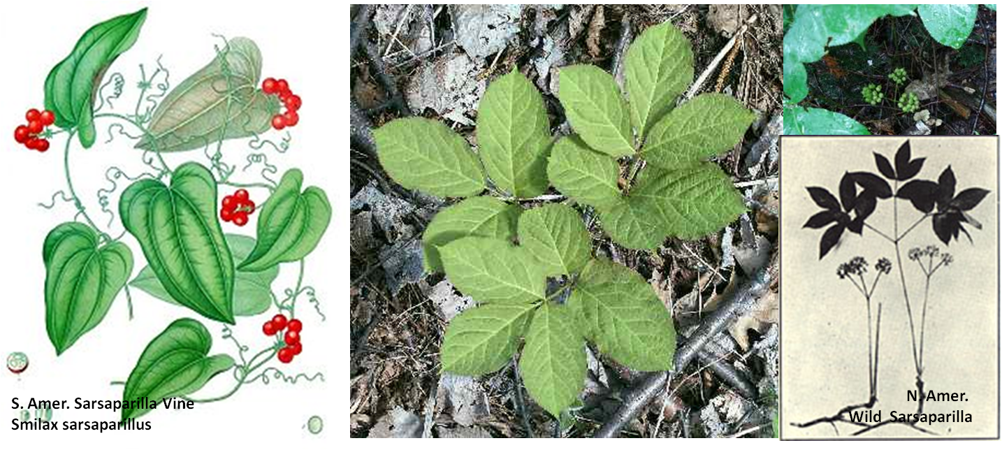 - sasapharilla (sic) [Aralia sp.] There is an American version of this available–Aralia nudicaulis.