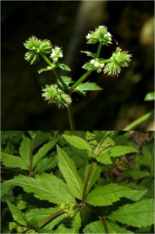 - black snake root [Caulophyllum sp., or Cimicifuga racemosa, or Sanicula marylandica]
