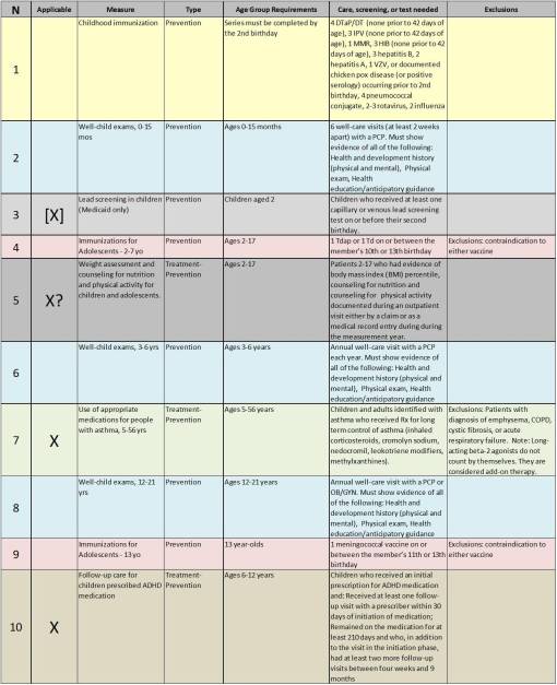 The following is a complete list of the HEDIS measures established for 2010.