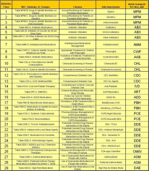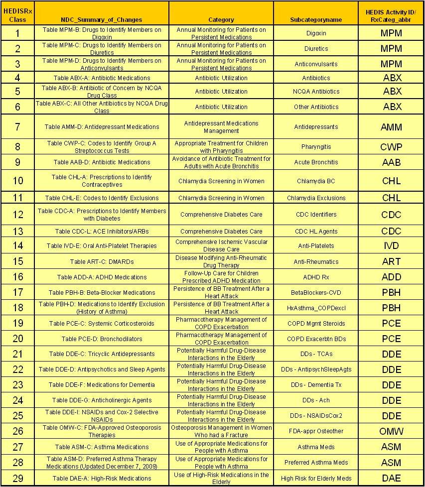 The following is a layout of the data for just one small group of medications reviewed for HEDIS.