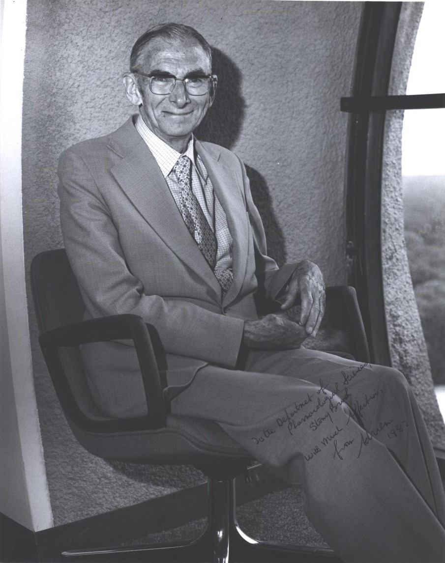 “To the Department of Pharmacological Sciences, Stony Book. With Much Affection, from Adrien 1982”