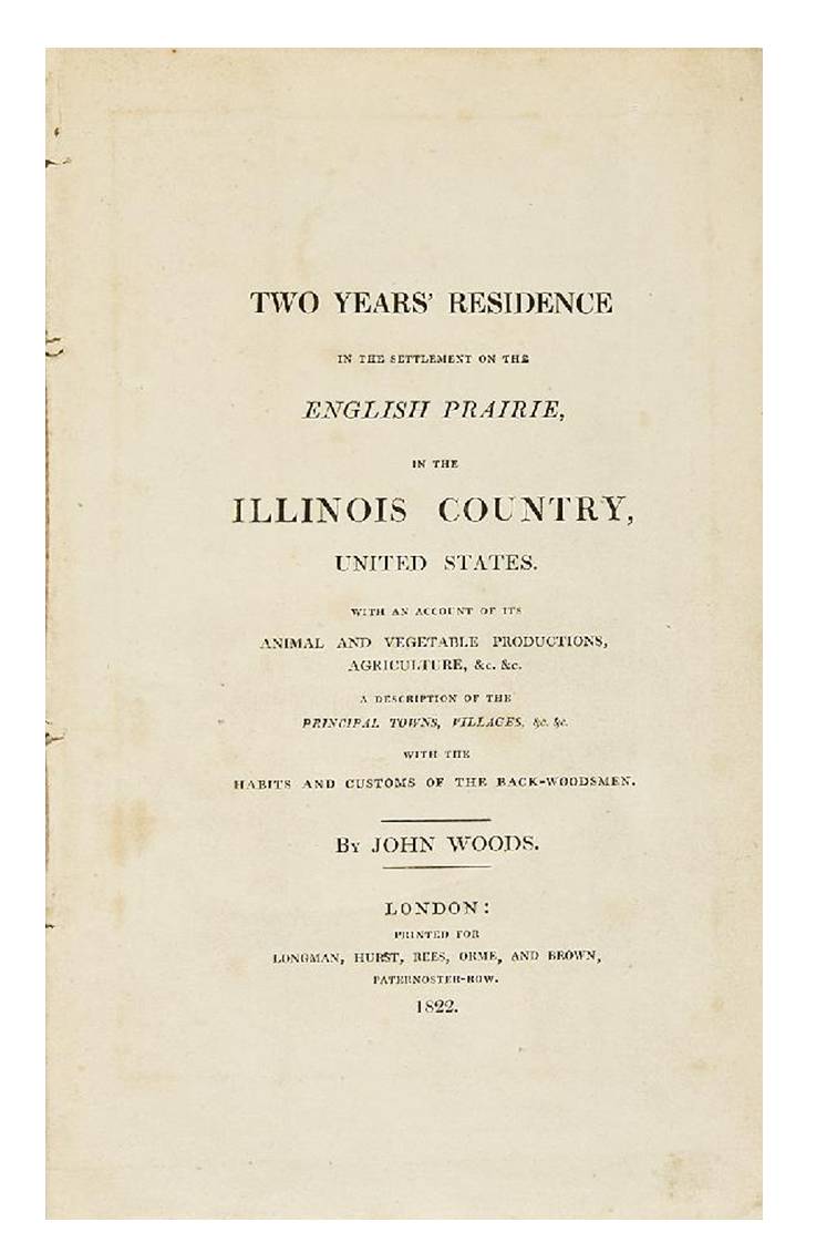 John Woods. Two Years’ Residence in the Settlement on the English Prairie in the Illnois Country, United States. [1822.] [Thwaites, Volume 10]