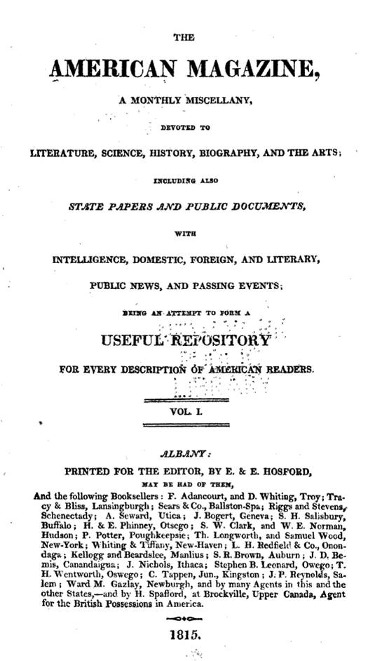 At the end of this page, I post any additional notes provided about this time frame which I pulled from The American Magazine, volume 1 (June 1815 – May 1816).
