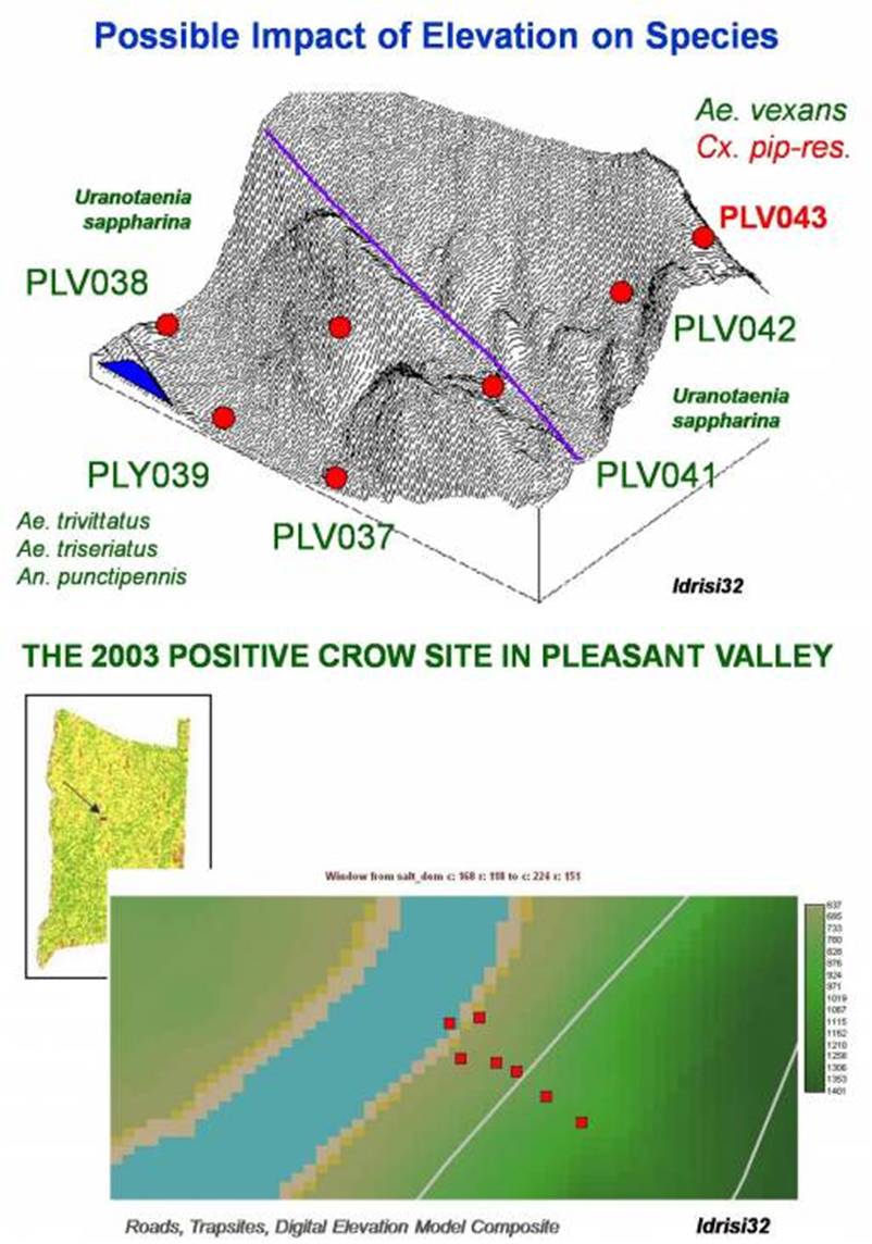 Such remained the case throughout my work history in the local settings for the next several years. In short time, I had pulled together and databased all of the data gathered to that point in time with west nile, and then began to evaluate it. By the end of my first winter in New York, I pretty much had a compete and detailed understanding of what we were dealing with regarding mosquito behavior and ecology and the ecology of west nile. So, by early spring, I commenced the first full-scale statistical analysis of this field data and began to document the relationships between weather, precipitation, temperatures and ecology on the potential for the various species of mosquitoes to develop their typical swarms. I then began relating what I observed about the animal host and carrier populations in relation to the disease, and soon had several working models detailing west nile ecology for use in predicting the disease behaviors.
