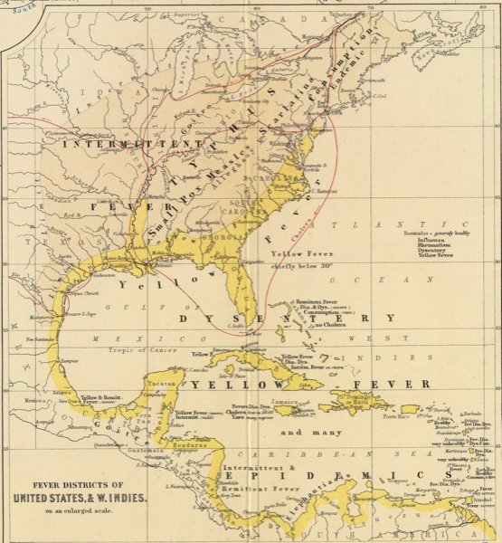 This page is not intended to be a primary reference to disease mapping and medical geography. Instead, it is a review of some of the history of this field, with considerable attention paid to antebellum materials since much of my work has focused on this period of time in North American medical and epidemiological history. The most helpful reference for finding the early versions of medical geography and disease maps is Medical Geography in Historical Perspective, edited by Nicolaas A. Rupke (London: The Wellcome Trust Centre for the History of Medicine at UCLA, 2000).
