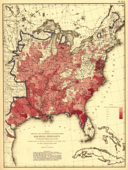 Malarial Diseases, 1870 Choropleth (compare with intermittent and remittent fevers, and Ague on Johnston’s map)