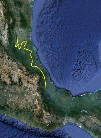 The following map depicts Mexico and part of Central America as it might have been known to a sixteenth or century explorer. Like the division fo the earth into three climate regions to which certain diseases can be related, this map defines Mexico and Central America into three regions with distinct, well-defined climate-topographic patterns. Such a map might have been how some of the explroers following Cortez’s travels might have interpreted the major settlements that they came in contact with.