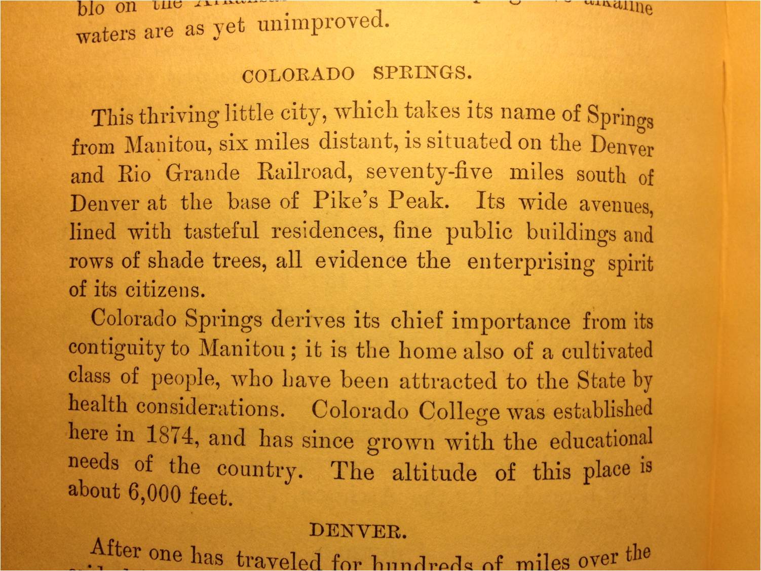 In 1877 Denison produced his map of the Rocky Mountains area, focusing on the region within and just east of the Rockies. This was part of his book, Rocky Mountain Health Resorts, the first edition of which came out that same year. A few years later, in 1881, Denison published the second edition of his book , and naturally due to the topic at hand included a fairly detailed map of a band of the United States located on and just east of the Rocky Mountains, extending from Wyoming on down to southern Texas. This map provides some fairly detailed depictions of the places frequented for health related reasons. These places were not only devoted to clean air for the purposes of treating tuberculosis, but also places where the many mineral springs, cold and hot, of the Rocky Mountains could be found in this part of the country.