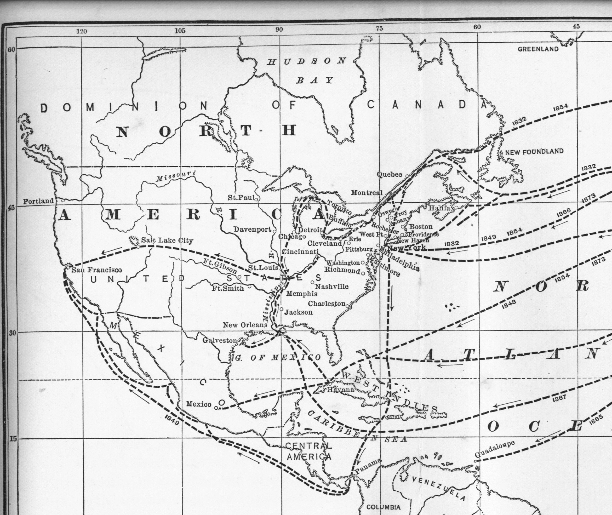 Each of the epidemic periods followed a different route due to differences in local and American history. Some of these changes are responsible for the different diffusion routes taken. Others follow the diffusion concept, especially the first two epidemic periods of 1832 and 1848. The reduction in diffusion and means for disease introduction for the 1854 and 1865-7 epidemic periods has a mixture of historical events preventing the diffusion process. For the 1854 in-migration, important lessons were learned about the nature of cholera, its ecological features, its climate-, topography and even geographic (latitude) limitations. This enabled some prevention of diffusion processes to begin to take shape, in particular events related to sanitation, water sources and cleanliness, hygienic lifestyle practices, and person-to-person disease patterns, the result of a better understanding of the contamination and infectious disease transmission events and requirements. By 1865, many of these sanitation practices were well understood and now in place, in particular related to the in-migration of cholera cases. The diseases may have been able to follow the diffusion processes taken years before, but due to human interventions were prevented from migrating too far inland and impacting too many individuals. Population density features were by this time more defined in previously unsettled regions, enabling them to be infected along transportation paths followed by the cholera in 1854 and 1848. But for the most part, there were improvements made in how to reduce the diffusion of cholera from this period on in 19th century American medical history. Evidence for this success is seen with the general behavior of the 1873 epidemic, which was mapped very well by John Peters and colleagues.