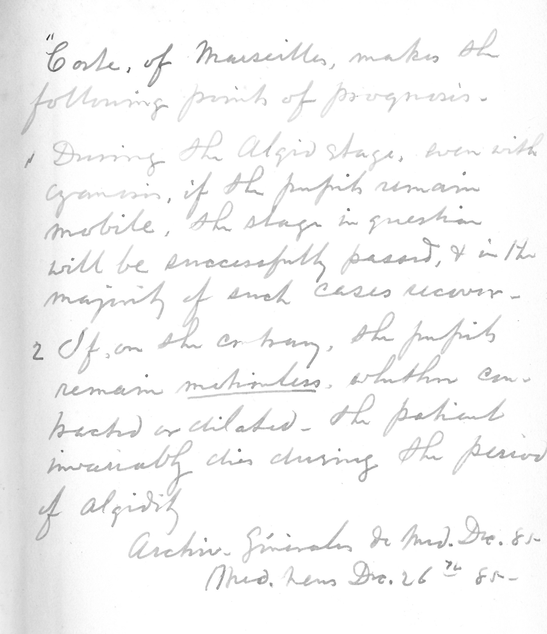 Quarantine practices by this period of time in medical history had become standardized. The note in Stille’s book links the biology and morphology of the vibrio, now known to be the cause for cholera, to how the Code of Marseilles needs to be followed during periods of possible disease transmission.