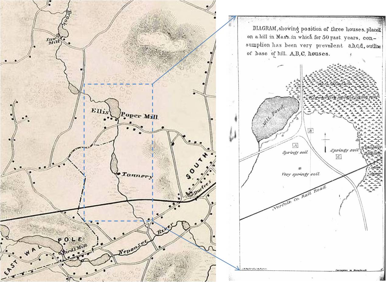 “I pass over Medway, Pembroke, Tewksbury, Sudbury*—in all of which are found cases of a similar, though perhaps less marked character, and shall close this part of my subject with the following statement, eminently illustrative of the truth of the law we are discussing. It shows also how this law has been acting for years, is acting now, probably not only in the township I shall name, but likewise in various other places in this Commonwealth—while the public, and attending physicians sit by, ignoring its fatal tendencies, and allowing family after family to be cut down by residing where, I verily believe, God never meant that man should live and attempt to rear a family.” [p. 45]