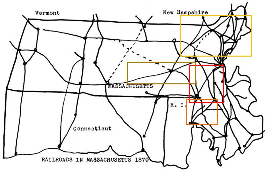 Some mid-sized urban settings had outer sections which later lost their location specific name and therefore could not be found on the contemporary Google map program available on the web. These missing places formed a very short list and included North Bridgewater, East Randolph, South Reading, and South Scituate. In some cases, the people-economic centers for these former places could not be identified with certainty using the modern map; for example we know South Scituate is south of Scituate, but due to the roadways pattern, exactly where to the south could not be defined.
