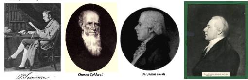 The following is the original article used to produce the above disease mapping logic. Seaman was not the only leading physician to contest Benjamin Rush’s conclusions about yellow fever. As already noted, Samuel Mitchell was also contesting Rush’s claims, as well as David Hosack, the replacement for the famous Samuel Bard of the New York Medical School when he retired during the years prior to the yellow fever epidemics. One other political and personal/social competitor with Rush worth mentioning in Charles Caldwell, who although he learned under Rush as one of his mentors, ultimately distinguished himself from Rush by also believing in the topographically based local miasma-based theories for diseases like yellow fever. (He too is covered elsewhere.)