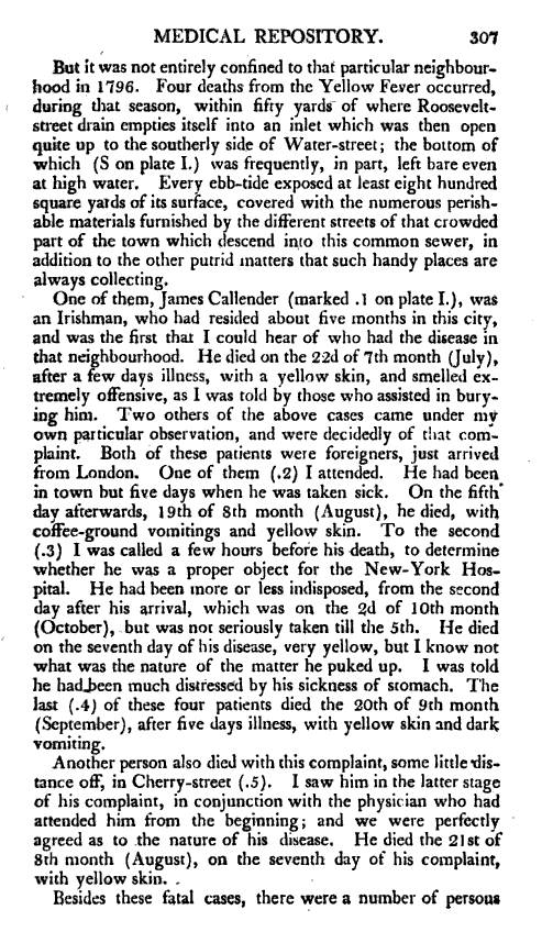 Valentine Seaman, 1797 (1804) – the Black Plague or Yellow Fever of New York City » 1804_MedicalRepository_vol1_no3_ValentineSeaman_YellowFeverinNY_p307