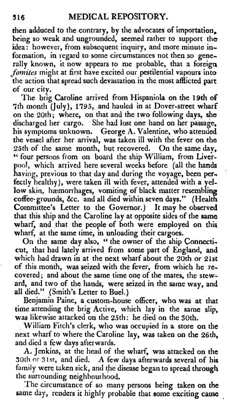 Valentine Seaman, 1797 (1804) – the Black Plague or Yellow Fever of New York City » 1804_MedicalRepository_vol1_no3_ValentineSeaman_YellowFeverinNY_p316