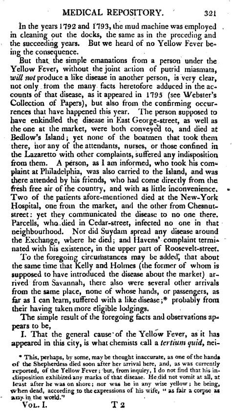 Valentine Seaman, 1797 (1804) – the Black Plague or Yellow Fever of New York City » 1804_MedicalRepository_vol1_no3_ValentineSeaman_YellowFeverinNY_p321