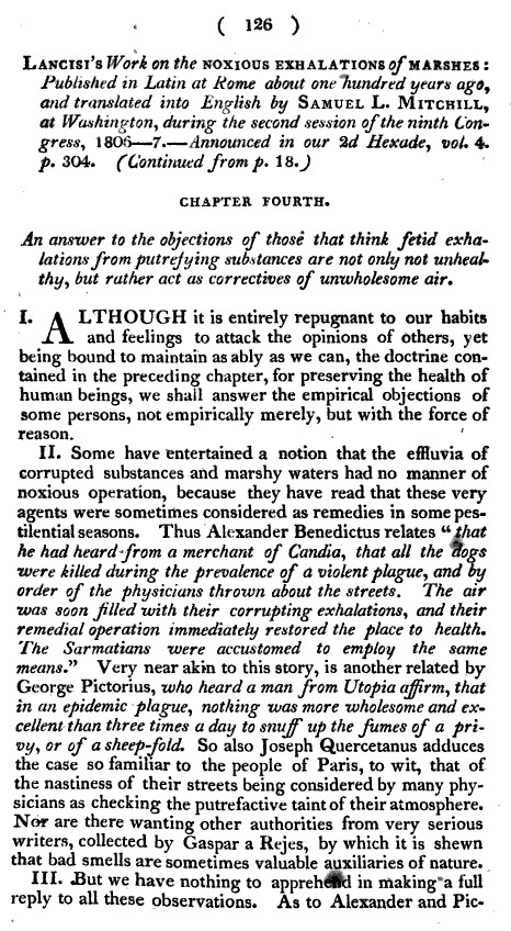 1717 – Lancisi – On the Noxious Effluvium of Marshes » MedRep-vol13-1810_Mitchell-OntheWorkofLancisi_p126