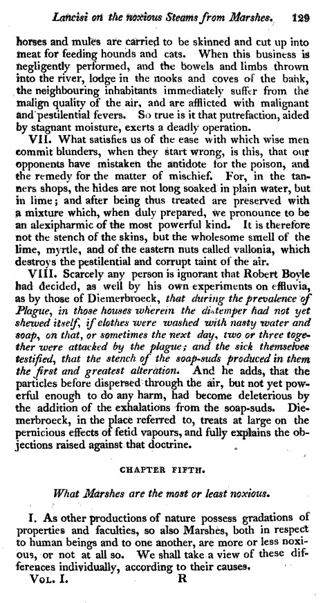 1717 – Lancisi – On the Noxious Effluvium of Marshes » MedRep-vol13-1810_Mitchell-OntheWorkofLancisi_p129