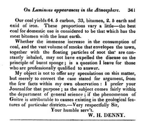 The miasma has been known to develop from the local features, as well as from particular human conditions at times. Does this mean the goiter is just part of a much larger health concern to people surviving in these places where goiter appears to become rampant? Does personal heredity play a role in the development of goiter? Is it a consequence of unhealthy living practices related to drinking, food consumption, the ways we produce our wells and make use of the local water? Do the local animals and farm animals surviving in the local vicinity play a role in the development of this disease, due to their own similar maladies?