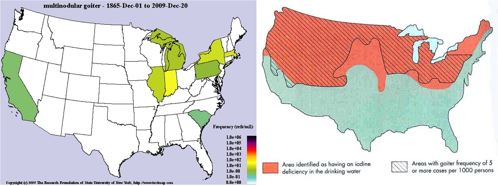Was Goiter a consequence of the miasma? and if so then was it due to the local environment? Can the miasma of one topographic setting where goiter abounds be different from that of a distinctly different topographic setting?