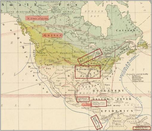 The miasm theory for disease was easy to argue along shore lines with large water supplies, swamps, deeply wooded forests, but in the prairie dominant western parts of New York on out to the midwestern Ohio territories how could it be explained? The Finger Lakes and Great Lakes helped out with this reasoning a bit in certain parts of the newly settled territories, but in dry, pristine field settings suffering from a state of drought lasting well into the winter months, this didn’t serve as an explanation once the goiter began setting in by late winter just before the thaw. We could use one interpretation of the environment to define the season fevers, influenza and other catarrhs to strike all year, but had to have another to explain why goiter behaves so different.