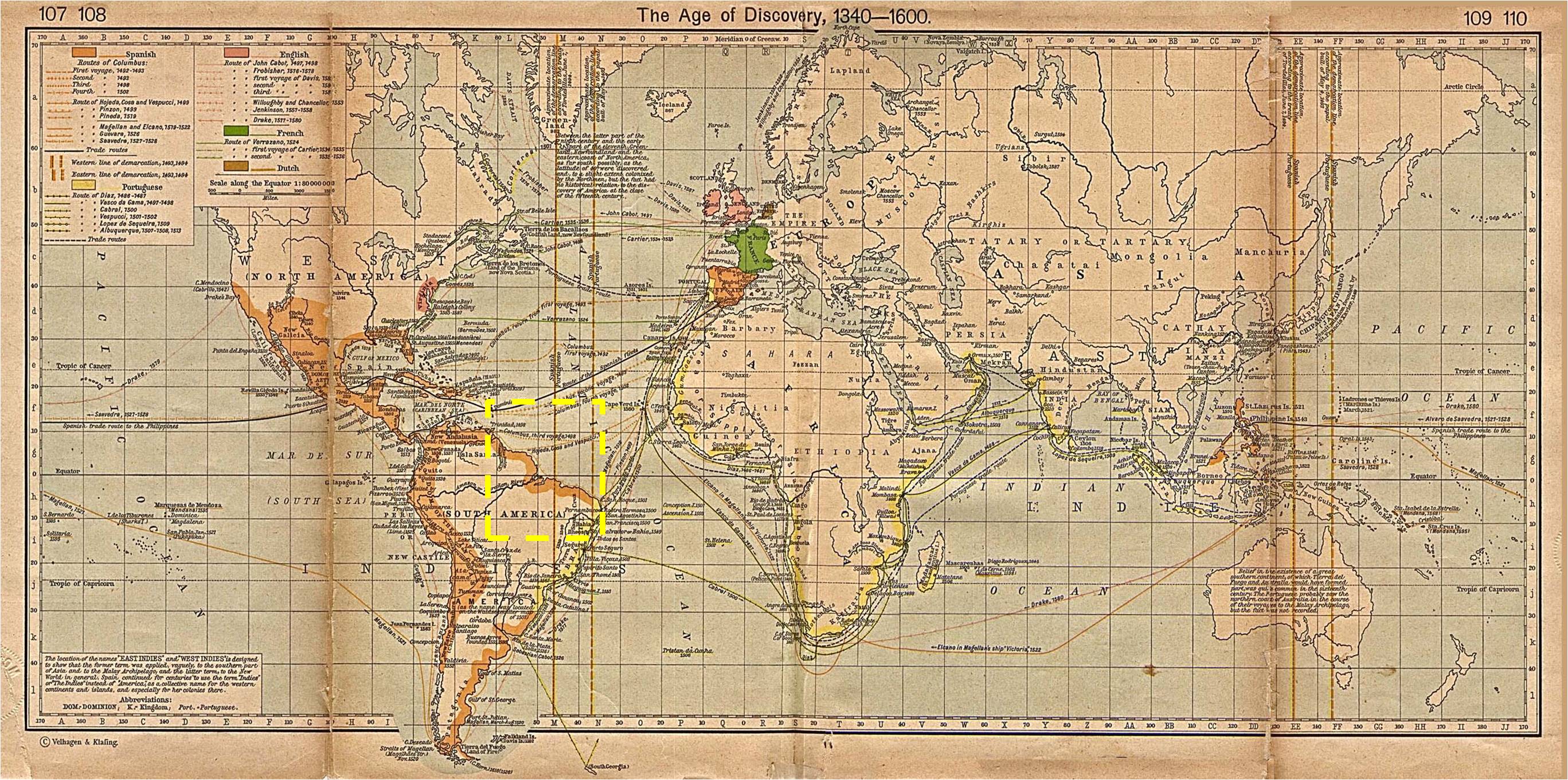 The ‘Age of Discovery’ Map, with Leblond’s coverage area for Yellow Fever Geography marked based on the description provided in the Medical Repository Book Review