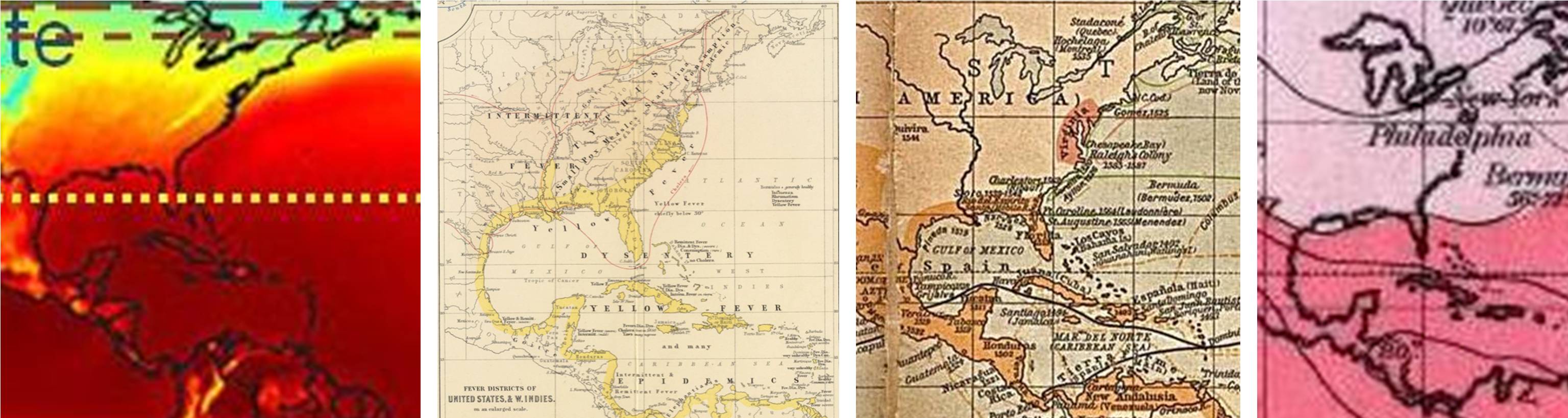 Johnston’s 1862 map of Yellow Fever, U-Texas map of same region with colonial populations, Isotherms defined tropical and temperate zones