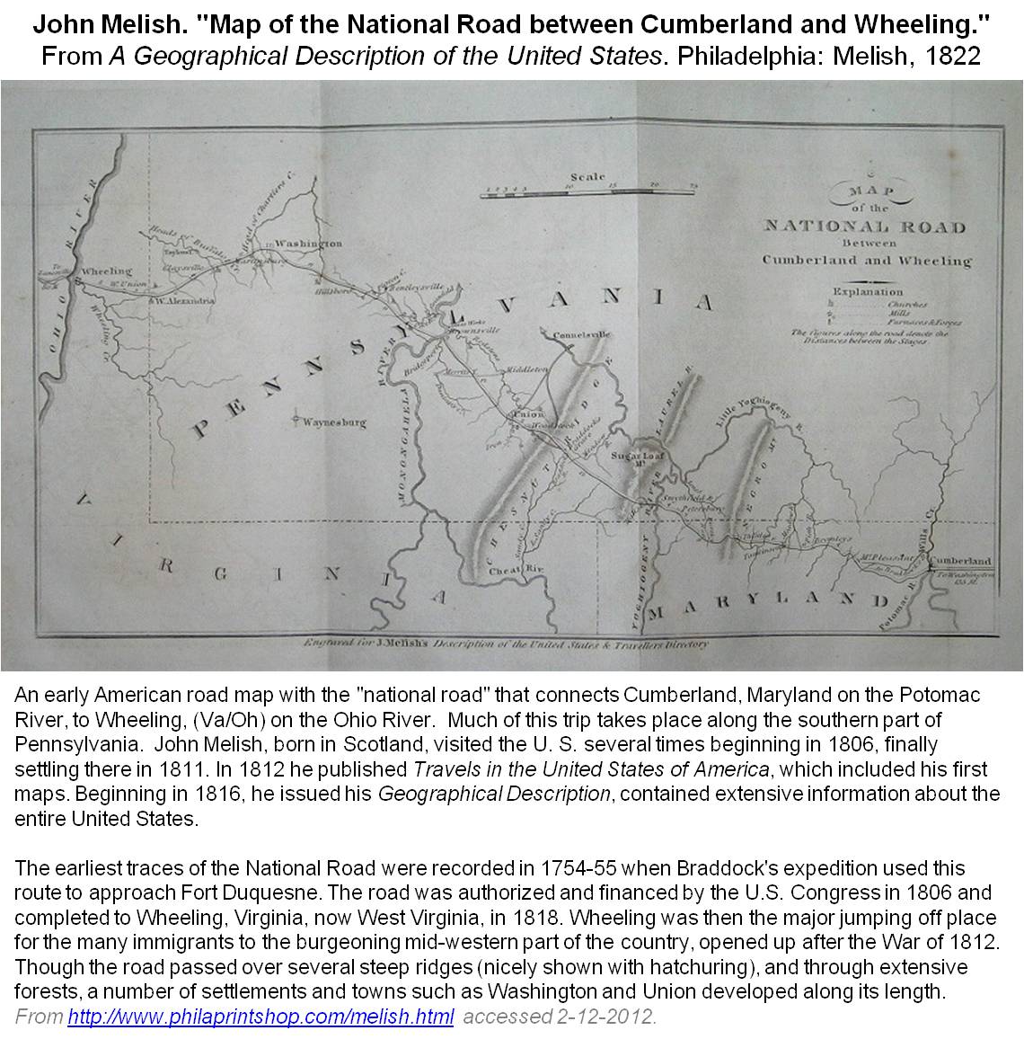 This is a unique example of Forsyth strongly and effectively demonstrating his support of Rush’s philosophies pertaining to medical geography and disease topography. Forsyth’s work and writings suggest he is more strongly devoted to Rush’s claims as an epidemiologist focused of people first, disease and the environment second. Geographically, this makes sense, due to the relationship between Pennsylvania and Virginia and the development of the major roadway used to remove to the young village of Wheeling situated on the Ohio River–Cumberland Road.
