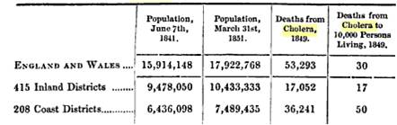 1852 – William Farr’s Elevation and Cholera paper » FarrsPage_table1_p156
