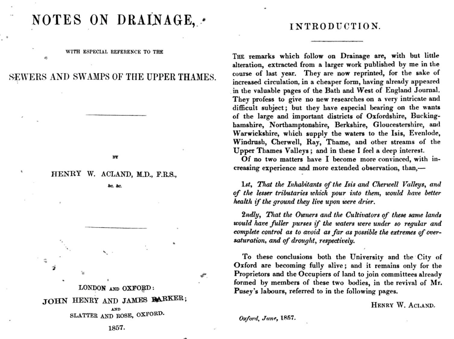 The tempest of success that Acland’s work on cholera brought to medicine and in particular the study of poverty and health defined his next two important writings in the field. Sanitation was Acland main focus as an epidemiologist, in particular the study of epidemiology as it related to health at home and health in the community. Acland’s next important works included his writing of sanitation and the need to improve upon the water supply. This was also a topic heavily reviewed and focused upon by most other famous epidemiologists for the time. Acland mentions a little of this in the introduction to one of his next books, entitled