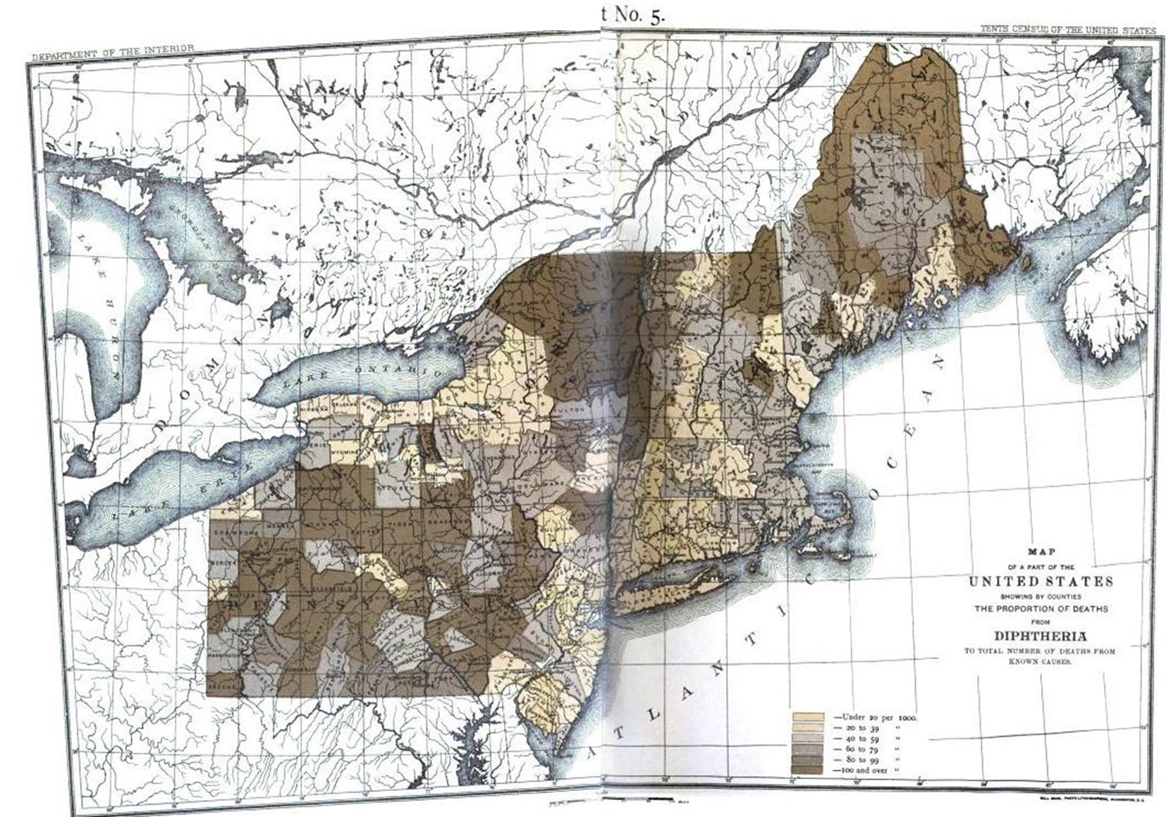 In my study of foodways and culture in New York, the 2000 and 2010 censuses showed that the region where diphtheria is thegreatest in NY is also the region with the lowest income, the lowest cash in savings region, the lowest property values, and the most self-sustaining family farms. Along the greenway belt from NYC to Lake Champlain, this same setting has some of the highest restaurant prices for a simple breakfast or lunch, involving a family restaurant meant to service people heading up to Lake George along the east side of Adirondacks. Diphtheria is most evident in poverty stricken regions, and still surfaces in the US in small clusters of cases, usually in rural settings.