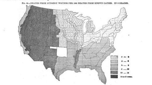1890 – The 1890 Census Disease Maps » 1890Census_96_GunshotWounds_entireUS_BW-6shades_Figure84_2