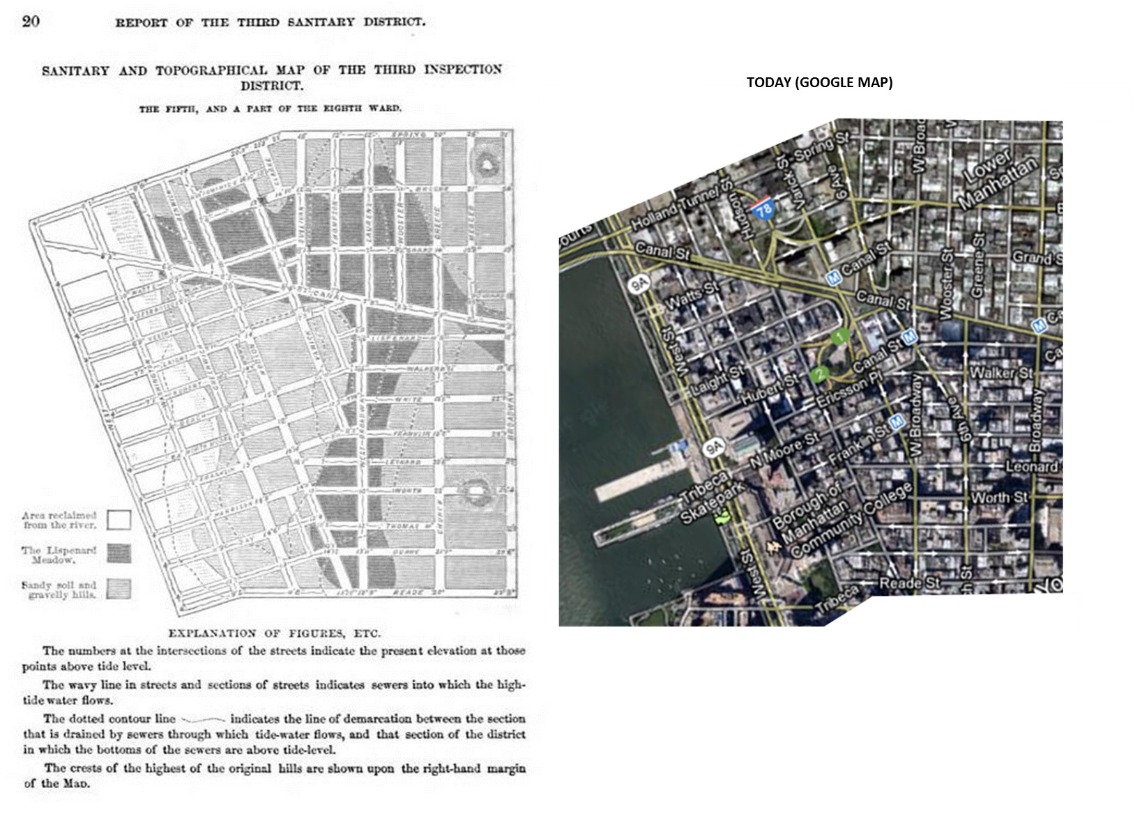 The topography of Manhattan worth mentioning for public health reasons and history include the following: