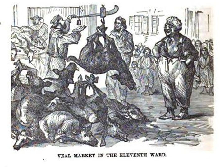 Slaughterhouse herd brought to the street in front of Ward’s School for children.