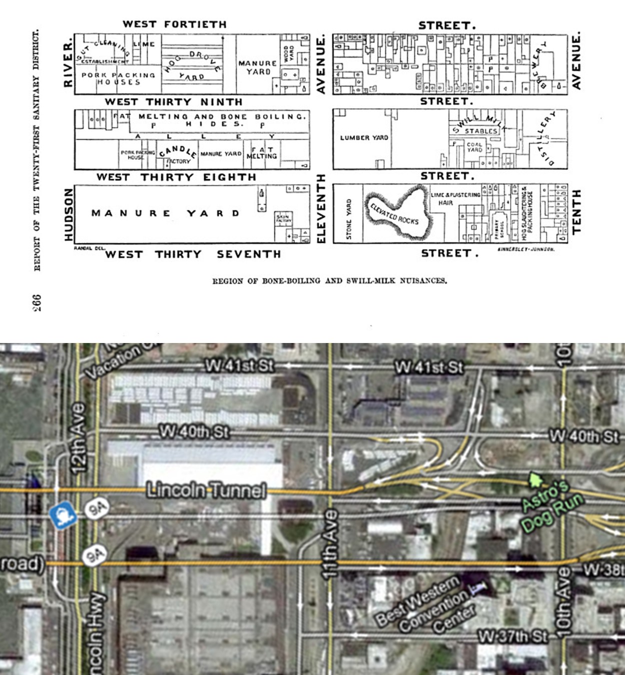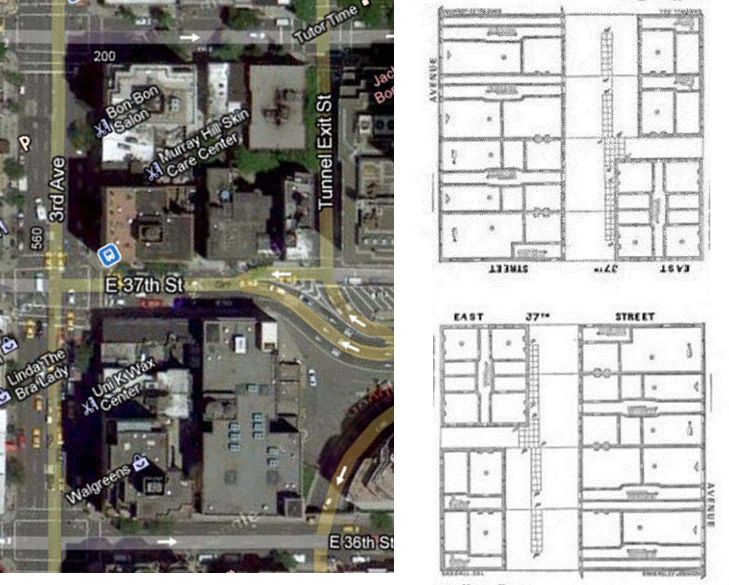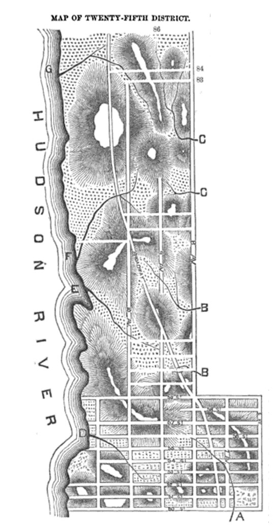 Attempts were made to link each map in the article to a modern aerial depiction of this part of Manhattan pulled from Google Map.