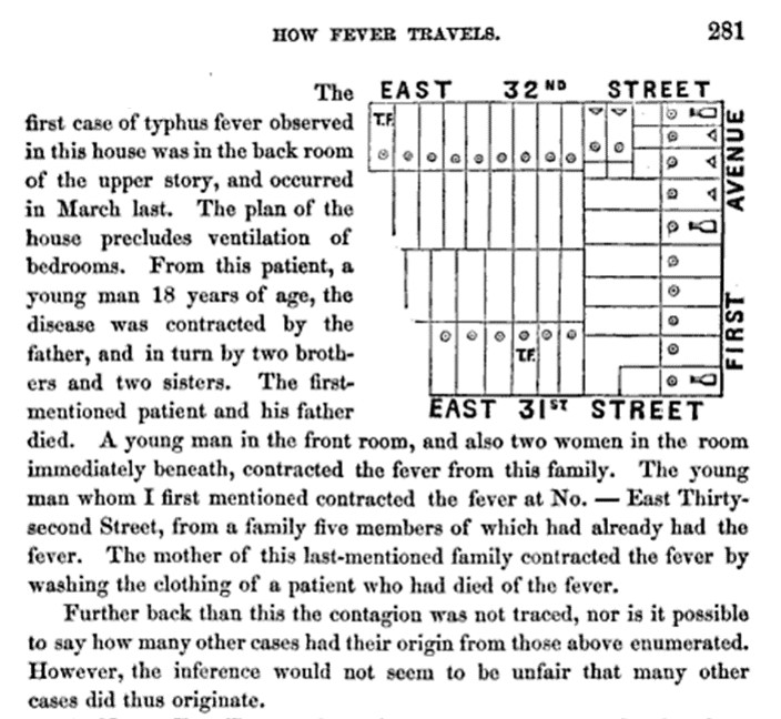 The development of a major reservoir connected to New York City, the Croton Reservoir, was completed by the early 1850s. There was water coming into a city-generated plumbing system. Yet the use of local wells was still very common, and the nearby placement of latrines and water closets a problem for some of these drinking water settings. During the time this report of 1870 was printed, many to most of these wells were still in use [and in the process of being mapped for one of my related projects].