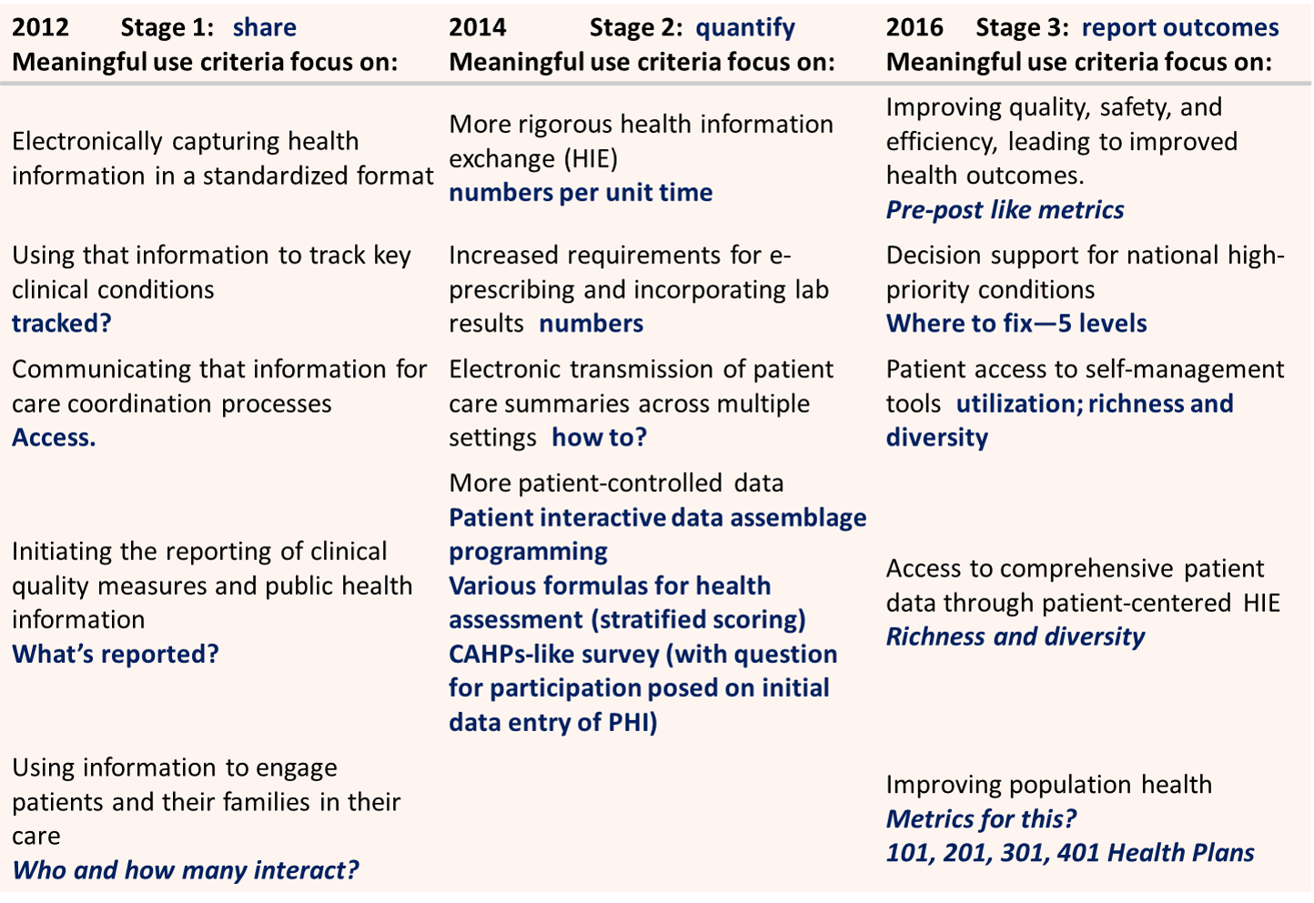 The Managed Care Plan and “Meaningful Use” Stages of Reassessment (Source: TMG advisory notes)