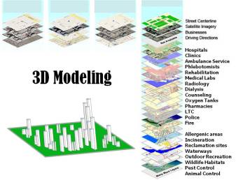 My logic and methodology for developing the 3D modeling technique in 2000 was based on DEMs, stored as one or a few DEMs per zip drive, and satellite images. In 2002-3, this technique was used to map toxic chemical releases along the Willamette watershed close to Troutdale, followed by the mapping of west nile disease locally as a small area topography/landuse study. To accomplish this two years later in 2003/4, ArcView results had to be exported in dataform, and/or imported by way of IDRISI32 into the IDRISI software for subsequent grid mapping and DEM modeling use. For SAS systems lacking a SAS/GIS, the spatial analysis methodology being developed made use only of the basic SAS, and the x-y grid and 2d histo/false cube option. This SAS was used to produce the grid upon which the data would be mapped and analyzed spatially.