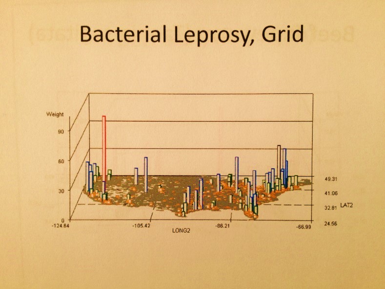 Like any DEM related resolution problem, I had a number of resolutions issues to contend with when I reopened this project to try and update it. Trying to meld the polygon area data into grid layouts used to produce surface plots and 3D grid maps was a bit of a problem. When comparing two diseases for example, both diseases need to be tabulated together so that a single table was produced for reanalysis and projection on the same grid for comparison. This classical problem seen with remote sensing imagery analysis also exists for statistical numbers related grid cell analyses techniques employed by ArcGIS and SAS. ArcGIS is more capable of managing this problem; however, SAS has some programming issues to contend with, but they are resolvable.