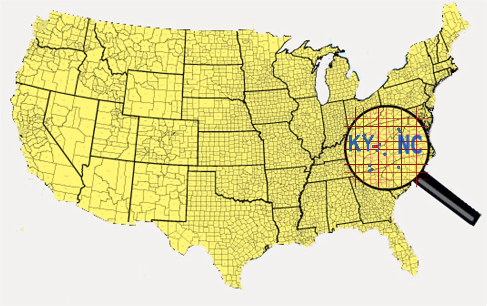 Obviously, if we were to map the US in square mile units or less ( a methodology promoted on one of my other pages), the numbers of grid cells could make this study too detailed to display as a single map. Its database could be too large, and the possibility of the zero value cells could impacting the overall value of such a process. For this reason I prefer to save the use of the small grid cell method for small, local area analyses, which is how it is normally applied for criminal and public health related work.