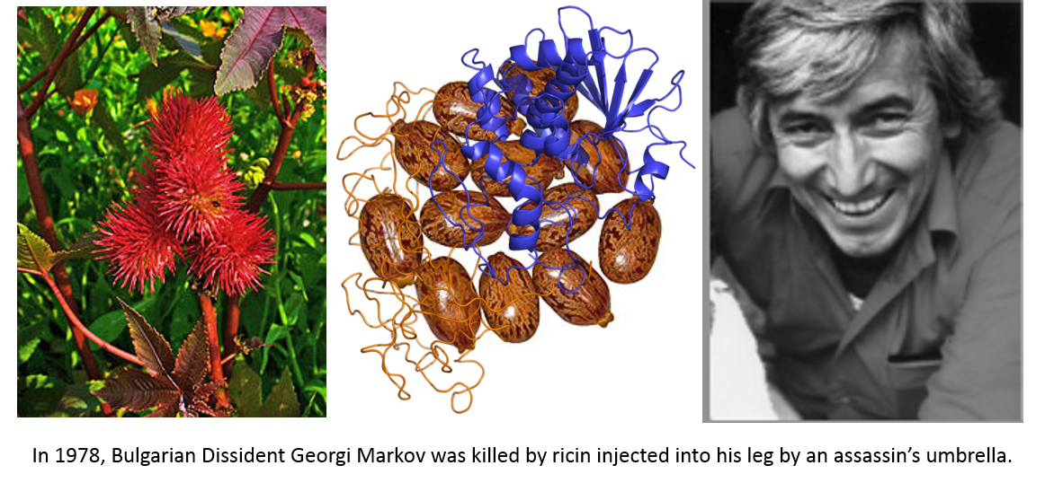 The main topic for this class was the Abrus precatorius bean from the Carribean, and the discussion of the famous assassination of George Markov of Bulgaria that recently was linked to these toxins in such a way that only a secret agent kind of story could be told in my classroom. This story then led to my mention of the lectin abrin which came from some beans I had a sample of, these small red and black spheroidal half pea-sized beans found of necklaces brought up from the Carribean by unsuspecting travelers. I had one of those necklaces recently purchased at the local church used goods store. Another toxic plants with lectins I like to bring up was the local native plant which I had a sample of, obtained from campus grounds–Pokeweed. This pokeweed mitogen was a regular ingredient in most genetic labs on campus; since it was unregulated at the time, once it was outdated, it got tossed into the regular garbage cans.