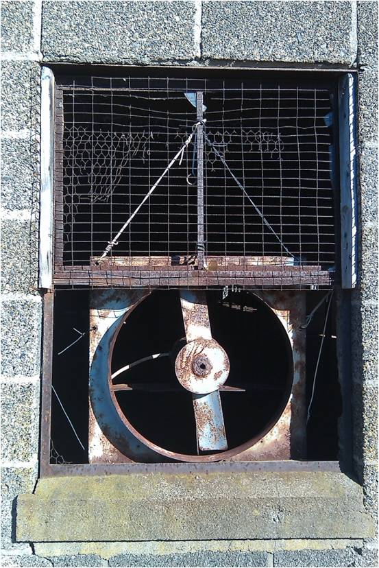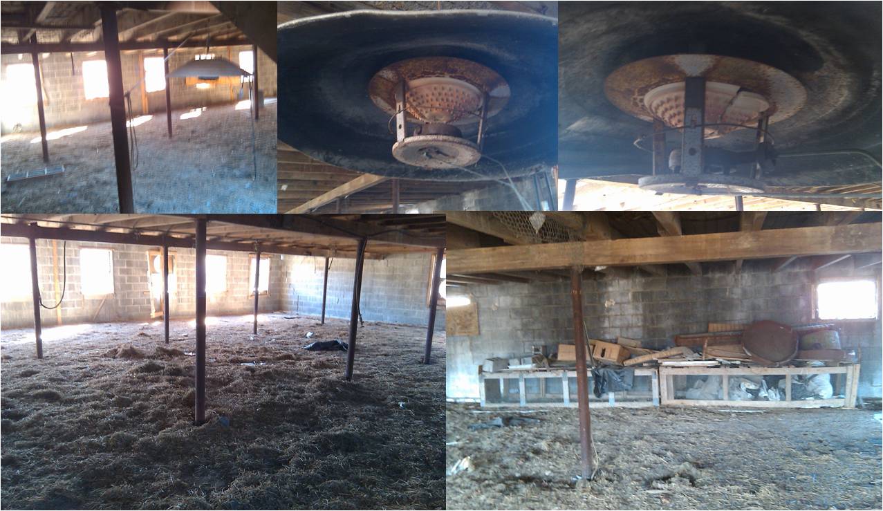 There were also more of those cages used to hold the poults down below. But what really stood out on this floor for the most part was the total open space it consisted of. It had numerous small openings throughout its walls and all possible roof sections. Some of these were placed between major roof supports, others in the littlest spaces available for such use. There were also numerous fans placed around the area.