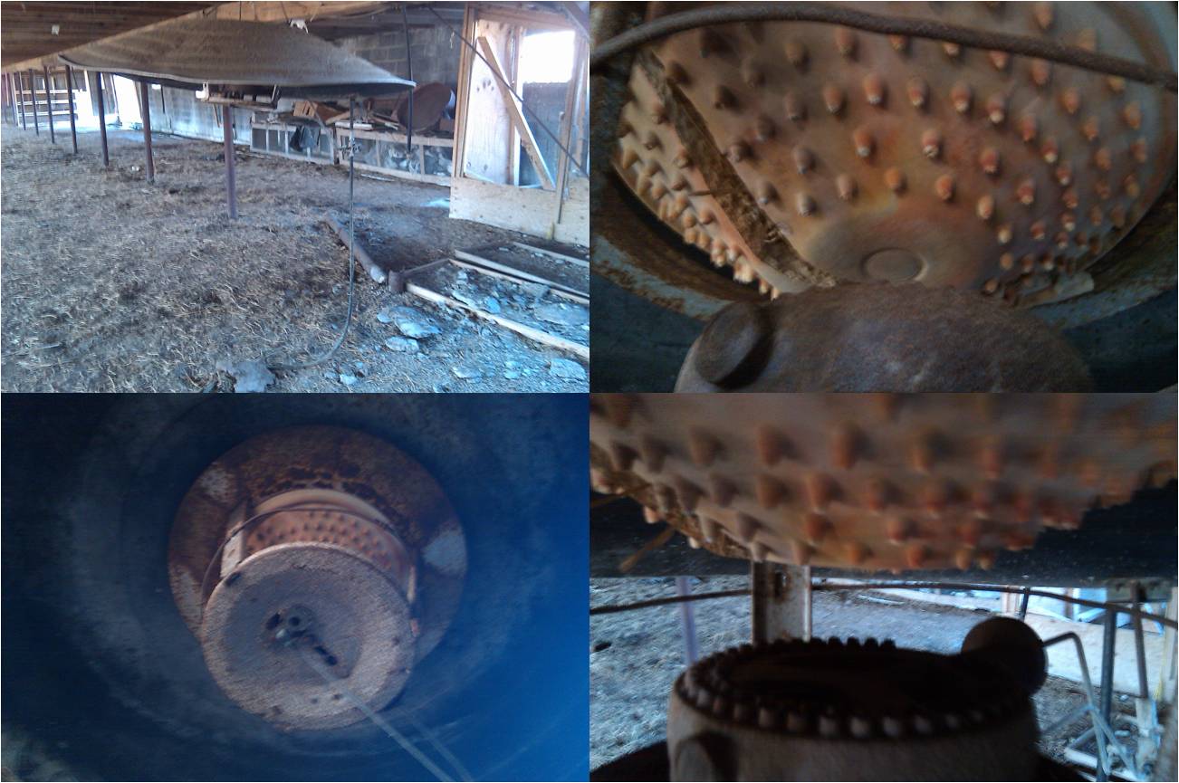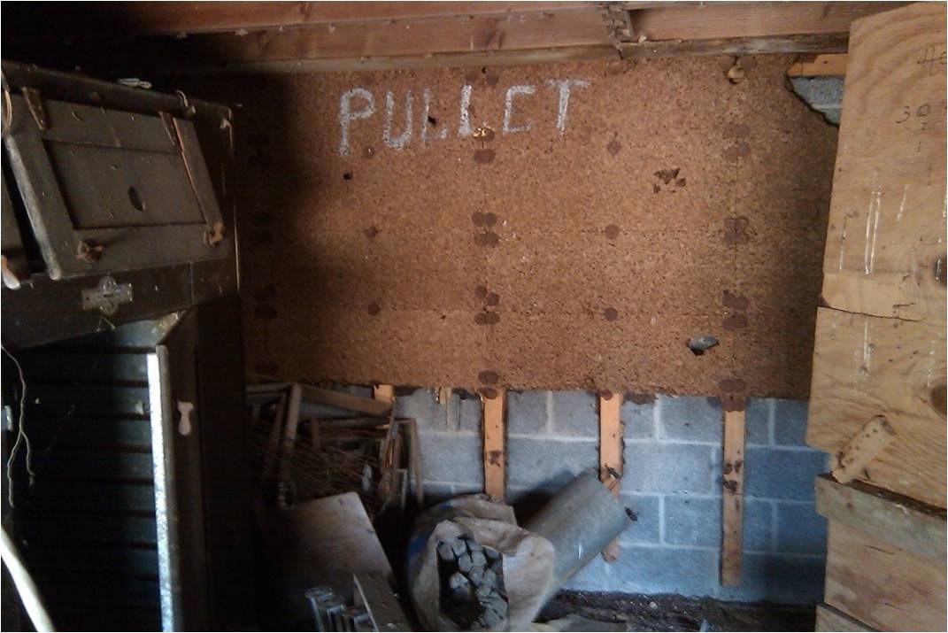 It took me a few minutes to put all the pieces together for this puzzle. The word pullet painted onto the wall told me this was some sort of poultry raising facility, not just a 1950s “egg factory”. The extremely thick cork along the entire walls was there for insulation and sound proofing. The very large metal units and other contraptions strewn about the floor told me that eggs were kept here, not by the dozens, but by the hundreds to nearly one thousand.